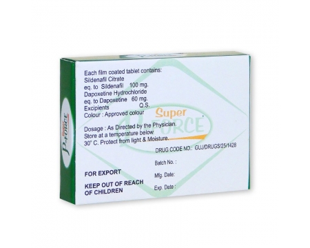 Силденафил цитрат увеличава притока на кръв към пениса и подпомага дълга и здрава ерекция, докато dapoxetine помага на контрола на преждевременната еякулация. Този комбиниран ефект прави Super P Force идеален стимулант за сексуално представяне и удовлетворение.